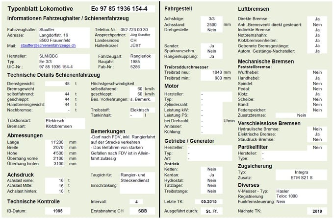 Technisches Typenblatt:
